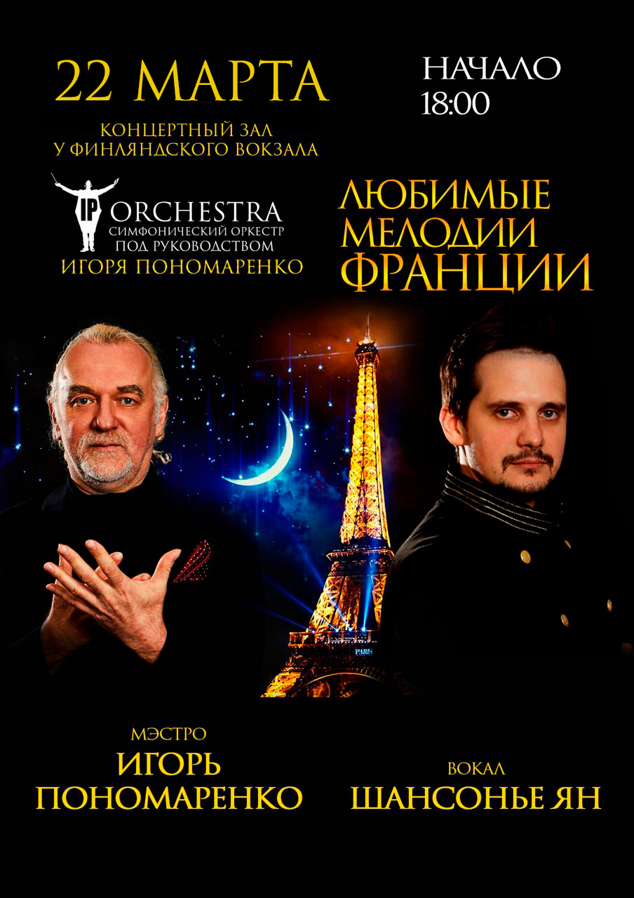 22 марта приглашаем Вас на атмосферный, романтический музыкальный вечер в обновленный концертный зал у Финляндского вокзала с флёром Любимых Мелодий Франции.